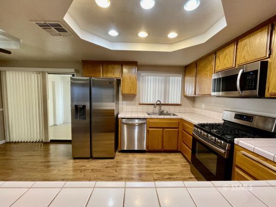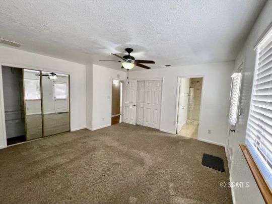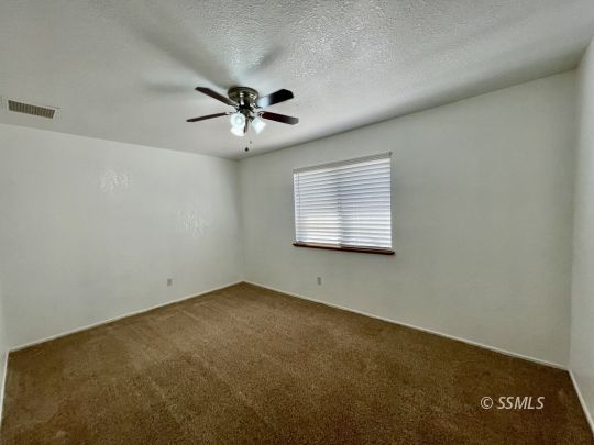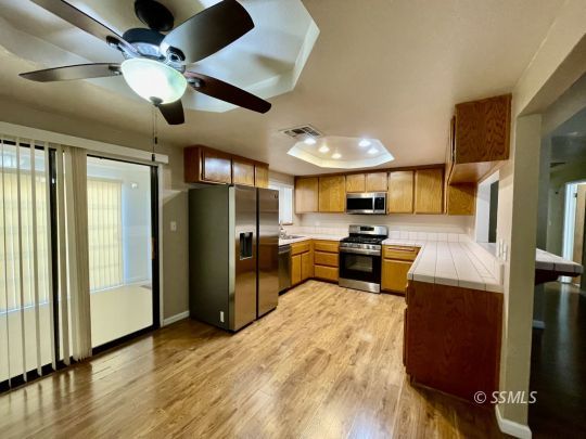 Move-in ready and super clean! This well-maintained 3 bedroom, 2 bathroom home offers a functional and inviting layout with quality finishes throughout. Features include laminate flooring in the entry, kitchen, dining area, and hallway, tile flooring in both bathrooms, and carpet in the living room and bedrooms. The living room is welcoming with a fireplace, built-in cabinets, ceiling fan, and window blinds. Each bedroom is equipped with ceiling fans and window coverings for added comfort. The kitchen comes complete with stainless steel appliances including dishwasher, stove/range, microwave, and refrigerator all included. Both bathrooms showcase beautifully tiled showers, granite countertops, and tile flooring. Enjoy the bonus of an additional room off the dining area with a sliding glass door and a separate door leading to the covered patio perfect for entertaining or relaxing. Home offers Dual Cooling. The fully insulated 2-car garage includes a remote opener, and the property also features a large storage/shop area and extended concrete for outdoor living.This home truly shows pride of ownership and is ready for its next owner!
